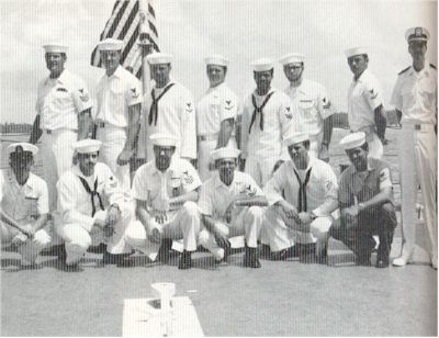 TOP ROW: L. TO R. EW1 Corliss, ET3 Kee, EW2 Williams, ET3 Cobb, ET2 Carter, EW2 Ashton, ET3 Williford, LTJG Pallas. BOT ROW: L. TO R. ETC Fredrickson, ET2 Yuhas, ET1 Williams, ET2 Esquibel, ETSN Surratt, ET3 Villegas.
