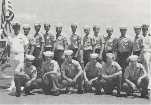 TOP ROW: L. to R. MMC Sprout, MM3 Wolf, MM2 Zehnle, MM3 Harrower, MM1 McGowan, MM2 King, MM3 Vandervegt, FN Carlson, MM2 Osborn, FN Topel, MM3 Hussey, LT. Popek. BOT. ROW: L. to R. MM1 Ecalne, MMFN Erlandson, MM3 Troup, MM3 May, MM2 Aiello, MM3 Zywiec. |