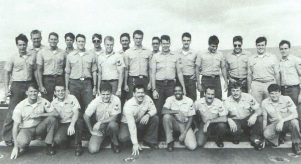 | WA Div. started off WESTPAC "86-87" at a fast pace. After two successful firings, one being ASROC and the other one a Torpedo, USS BREWTON and WA Div. sailed into the Northern Pacific to do what they do best; go "Tail Wet" and hunt submarines. The Northern Pacific operations were quite successful and WA conducted extensive training. Outside of the Philippines, WA used their Active Sonar in an exercise effectively locating, tracking and achieving a Fire Control solution on a submarine. From Singapore, BREWTON and WA charged into the Indian Ocean to show a present of force and was involved in several "Tail OPS" before anchoring off Masirah. At Masirah BREWTON was tasked to guard the rest of the Battle Group at anchor by patrolling the area. BREWTON and WA were again involved in several active and passive tracking exercises along its way to Geraldton, Australia. Upon completion of a terrific port visit in Australia, BREWTON resumed her duties in screening the Battle Group. We detach from the Battle Group and headed for Hawaii. WESTPAC "86-87" was finished with WA and BREWTON proving once again it has the finest ASW team in the Pacific. | ![]() GMM's painting after an ASROC launch |