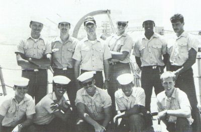Left Side/1st Row; L-R: SN Johnson, SN Saavedra, BM3 Blazynski, SN