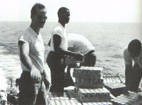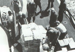 The words of "Flight Quarters, Flight Quarters; Stores Onload; Soda Onload;
