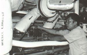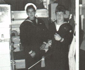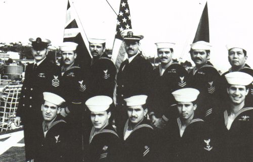 MM3 Cohen, FN Maas, ENFA Pedro Botello, MM3 Edward Alvarez, MR3 Vincent. SECOND ROW: MMC(SW) Donald Barnes, MM2 Tracy Wrubel, ENS Paul Bevans, MM2(SW) Joeseph Battaglia, EN1 Ronald Amerman, EN1 Elmer David.