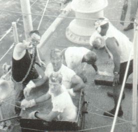 EOCN Kimbrough. SECOND ROW: LT Russel, EO1 Cotton, BU3 Gosch, CE3 Horsley,