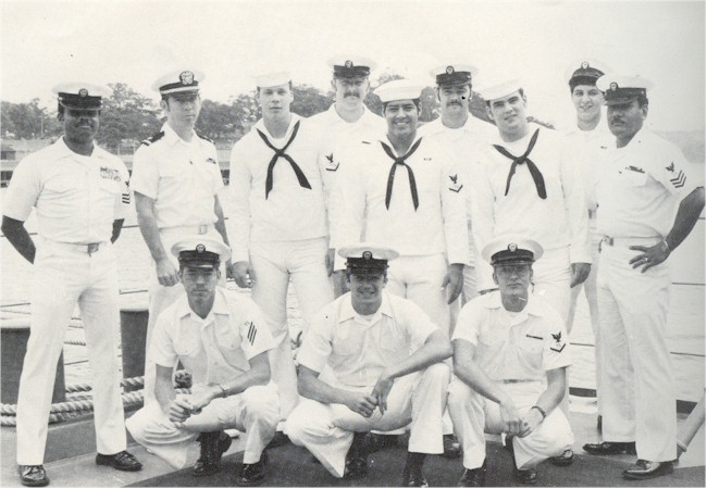 L-R TOP OS1 DEREK, ENS. MCKEE, OS3 EVERETT, OS2 WALKER, OS3 BERNAL, OS2 KLUESNER, OSSN JACKSON, OS3 SANCHEZ, OS1 ALAILEFALEULA L-R BOTTOM OSSN ZERFAS, OSSN ANSPAUGH, OS3 RODGERS