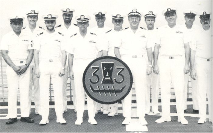 MS1 TEODORO, LCDR SCHMIDT, LT SMITH, LT CREIGHTON, CDR CRAIG, RMC FORREST, CWO CASTO, COMMODORE KERR, LCDR LINDER, NCCS ILUND, AG1 HAMPTON, YNC RUDE