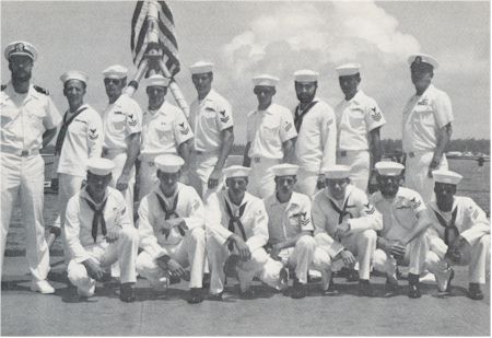 TOP ROW: L. to R. ENS Langley, FTG2 Lewis, GMG2 Ford, FTG2 Carbee, FTG2 Stevensen, FTGSN Smith, GMGSN Bunch, GMG1 Guisti, FTGCS Stevens, BOT. ROW: L. to R. GMGSN Cook, FTGSN Naginewicz, FTGSN Normand, GMG2 Kelley, FTG2 Dedmon, GMG Roschal, FTGSN Harris. |