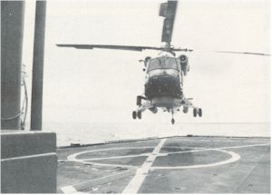 FLIGHT OPS "FLIGHT QUARTERS! FLIGHT QUARTERS! ALL HANDS MAN YOUR FLIGHT QUARTERS STATIONS. REMOVE ALL COVERS, LOOSE GEAR AND DEBRIS. ALL HANDS REMAIN FORWARD OF THE WEATHER DECKS, AFT OF THE BOAT DECKS. SMOKING LAMP IS OUT TOPSIDE WHILE THE SHIP IS CONDUCTING FLIGHT OPERATIONS." It seems as if we heard those words at least 100 times a day. Our LAMPS Det kept us very busy during deployment. On some days we spent as many as 3 hours at flight quarters off and on. No matter what the mission, we were always prepared for launch or recovery. |