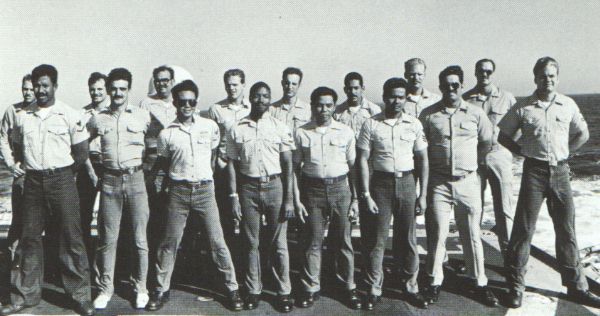 | 1st Row; L-R: HT3 Chevy, HT2 "T", HT3 Alex, MR1 Lagula, HTCS Leonard, HT2 Hall. 2nd Row: HT2 Pulley, HT3 Davis, HT1 Goldstien, HT3 Batman, HT3 Arzy, HT1 "Bobby O", LT Hatch | |