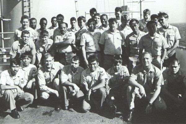 | 1st R: L-R; SK1 Reboya, SH2 Isidro, LT Hewett, MS2 Kimble, SK2 Banas, AK1 Angel, ENS Peterson, SK3 Sterry. 2nd R: MSSN Greenmun, SH3 Francis, MS1 Grady, MS1 Geslani, MS1 Stewart, SKCS Alegre, MSCS Delacruz. 3rd R: DK1 Tackett, SN Johnson, MS3 Bare, SH2 Knight, SK2 Williams, DKSN Johnson, SN Robinson, SN Watters. 4th R: MS3 Jones, MSSN Hawkins, MSSN Doebler, EN Sinclair, HT2 Taylor, SK3 Williams, RMSN Foster. | |||